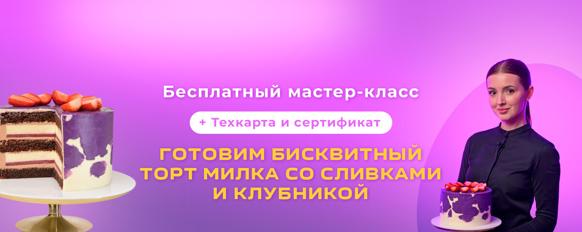На мастер-классе приготовим торт по мотивам популярного нежного молочного шоколада! Вы освоите все тонкости приготовления нового торта, покоряющего сердца любителей молочного шоколада 🍰
